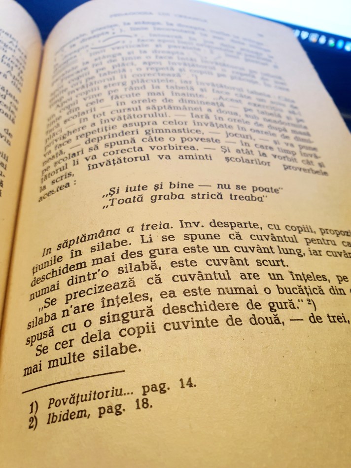 Timpul acesta nu este pierdut căci învățătorul deprinde școlarii pe nesimțite cu regula și tot acum are prilejul de a cunoaște natura și apucăturile fiecărui copil care, dacă ar fi rele, trebuie sa îi desbăreze de dânsele încetul cu încetul”.